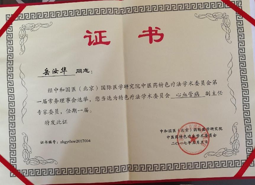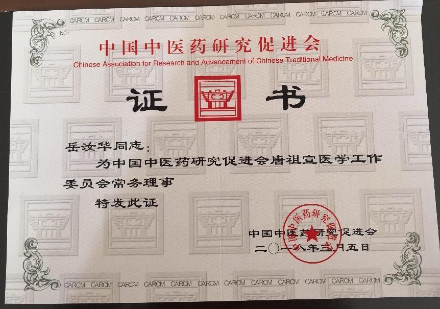 现任唐祖宣学术思想委员会常务理事、学术部长;中国中医药信息研究会名老中医薪火传承分会学术委员会副主任委员;薪火传承分会学术委员会传承导师。