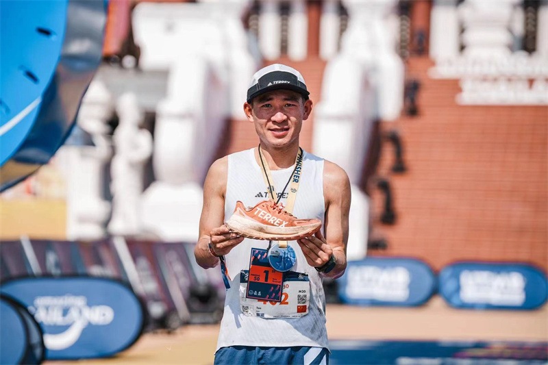 中国运动员骆滔穿着大速流星夺得泰国茵他侬50公里组别冠军