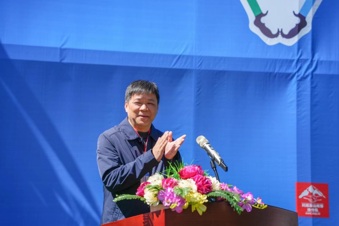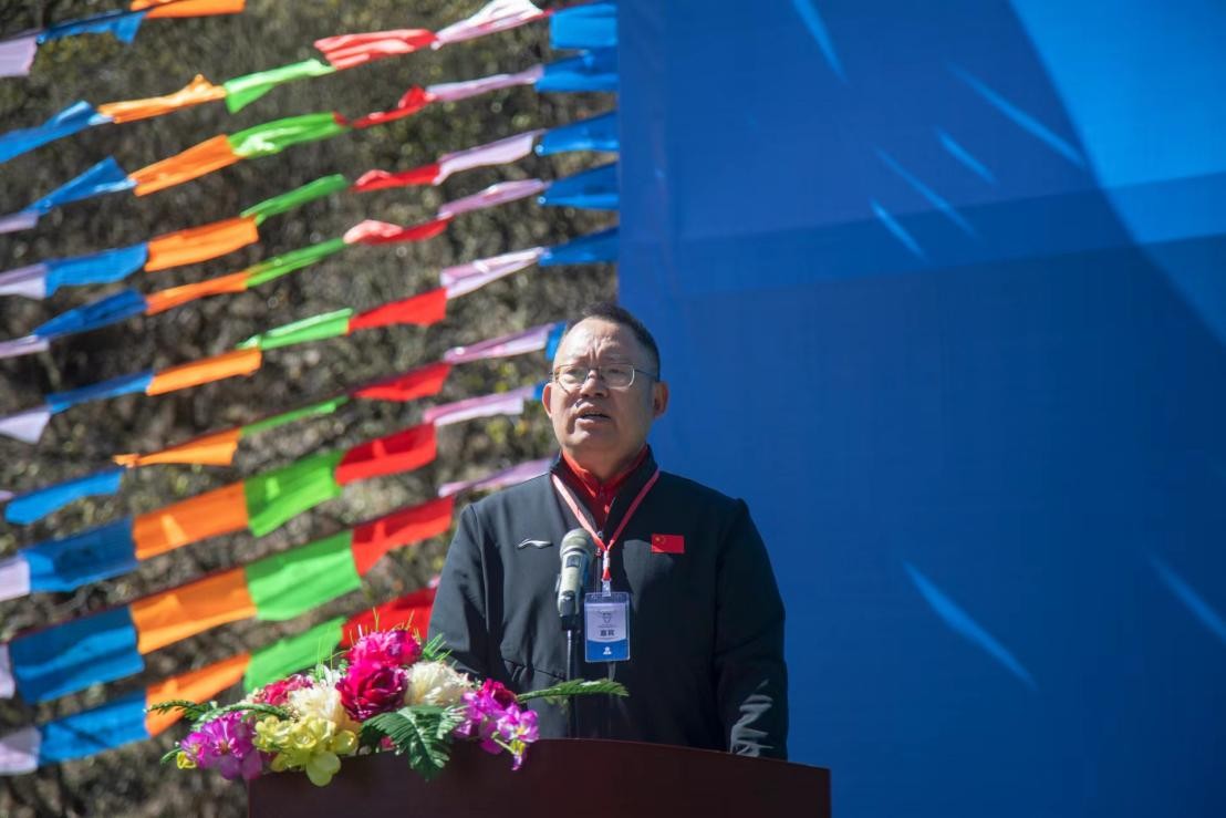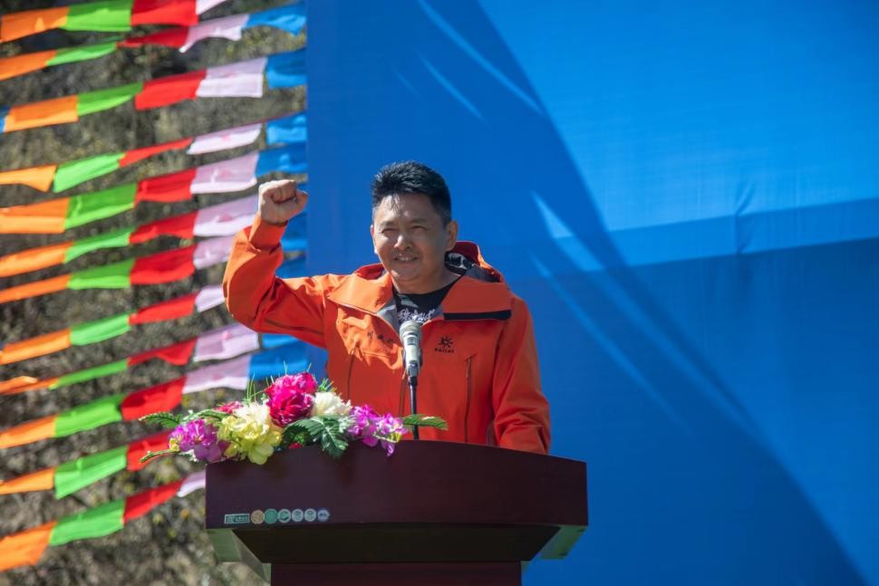 阿坝州人民政府副秘书长段建波为开幕式致辞并为登顶珠峰的三位阿坝州勇士颁发奖励