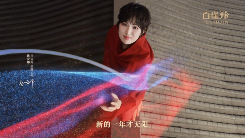 其中,百雀羚联合品牌大使姚安娜为新年礼盒倾情打造的 TVC别具巧思,画面以喜庆的中国红为主色调,搭配上满满的中国风,如中式建筑、纸鸢、灯笼等,营造出浓郁的东方氛围。核心理念“心不设限”,鼓励顺遂内心指引,勇敢蜕变。简洁而有力的表达,积极向上、勇于突破的生活态度,传递出经典国货品牌穿越历史周期所迸发出的新的生命力,作为TVC主角的姚安娜,举手投足间都散发着独特的魅力,将东方女性的优雅与自信展现得淋漓尽致,完美展现出东方礼、中国美的独特神韵。