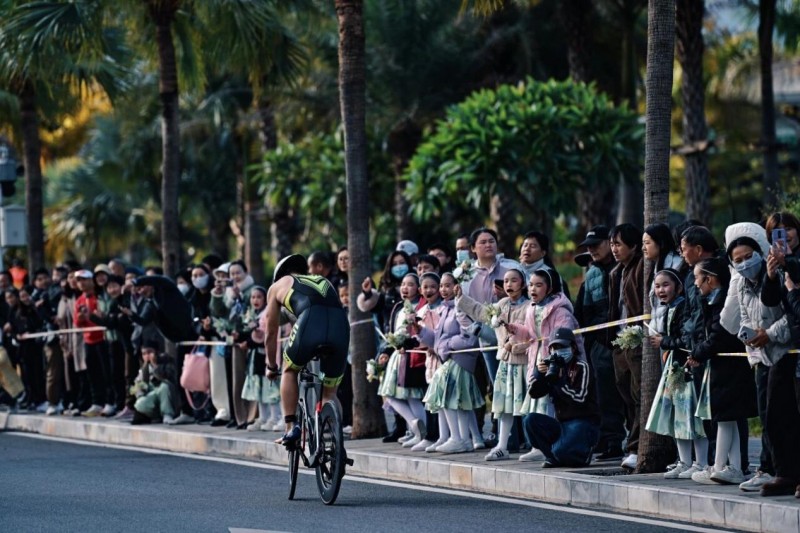 赛道沿途挤满了自发前来加油的巧家当地人,他们挥舞着手臂、高声呐喊助威,将现场氛围推向一个又一个高潮。许多当地人坦言,此前对铁人三项运动并不了解,但看到选手们奋力拼搏的身影,便不由自主地为他们加油鼓劲。这份纯粹的热情不仅温暖了每一位参赛选手,也让铁三与运动的种子在巧家人民的心中默默扎根。